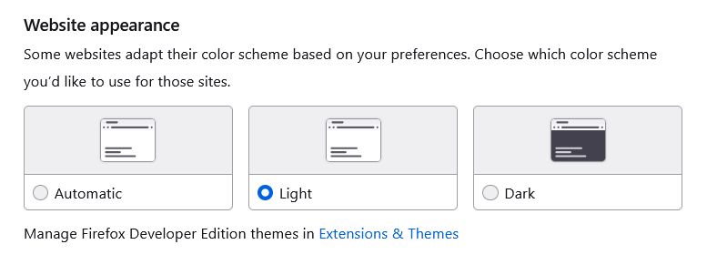 Firefox Website Appearance Selector